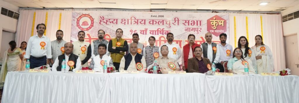 नागपुर स्नेह मिलन व परिचय सम्मेलन से समाज के लोग संगठित होकर एकजुटता से काम करते हैं। यह विचार आर्किटेक्ट सुकुमार नशीने ने हैहय क्षत्रिय कलचुरी सभा की ओर से संताजी सांस्कृतिक सभागृह, बुधवारी बाजार में आयोजित 16 वें वार्षिक स्नेह मिलन एवं परिचय सम्मेलन में व्यक्त किए। कार्यक्रम में समाज के होनहार विद्यार्थियों का सम्मान स्वर्ण तथा रजत पदक और प्रमाणपत्र देकर किया गया। आकाश अनूप उजवने को समाज गौरव से सम्मानित किया गया। 75 वर्ष पूर्ण कर चुके और शादी के 50 साल पूर्ण करने वालों का शॉल तथा श्रीफल देकर सम्मान किया गया। इस अवसर पर ‘स्मरणिका-2025 कुंभ एक महायोग’ का विमोचन मुख्य अतिथि आर्किटेक्ट सुकुमार नशीने तथा अन्य अतिथियों ने किया। स्मरणिका में!