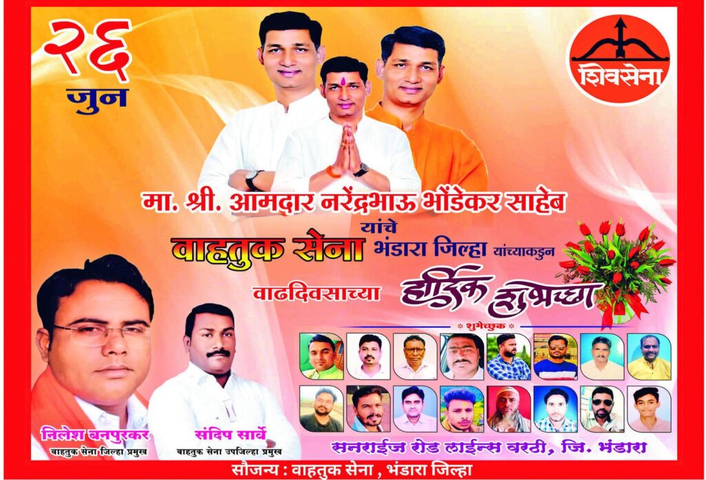 भंडारा: आने वाला प्रत्येक नया दिन, आपके जीवन में अनेकानेक सफलताएँ एवं अपार खुशियाँ लेकर आये ! इस अवसर पर ईश्वर से यही प्रार्थना है कि वह, वैभव, ऐश्वर्य, उन्नति, प्रगति, आदर्श, स्वास्थ्य, प्रसिद्धि और समृद्धि के साथ आजीवन आपको जीवन पथ पर गतिमान रखे! मान मिले सम्मान मिले,खुशियों का वरदान मिले. क़दम-क़दम पर मिले सफलता,डगर-डगर उत्थान मिले.