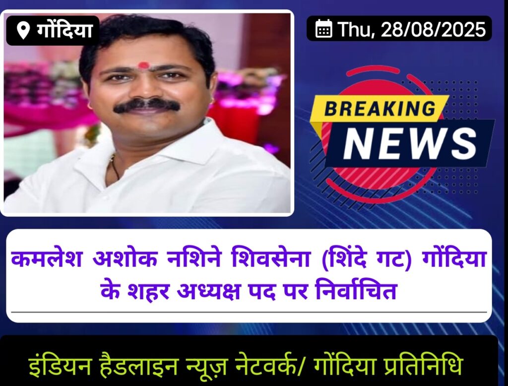 गोंदिया: शिव सेना प्रमुख माननीय उपमुख्यमंत्री श्री एकनाथ जी शिंदे साहब के आशीर्वाद से एवं आदरणीय मंत्री श्री आशीष जी जैसवाल एवं विधायक श्री नरेंद जी भोंड़कर जी के हाथों को मजबूत करने के लिए श्री रूपेश (सोनू) कुथे जिला अध्यक्ष की आदेश पर कमलेश अशोक नशीने को शहर अध्यक्ष बनाया गया गौरतलब है की आगामी नगर परिषद के चुनाव को देखते हुए एवं सामाजिक राजनीतिक पार्टियों का असमंजस बरकरार रखने के लिए यह नियुक्ति देखी जा रही है कमलेश अशोक नशीने को अध्यक्ष बनने पर गोंदिया शहर में कई दूसरे राजनीतिक पार्टियों में उथल-पुथल देखी जा रही है! इसका असर दूसरी पार्टियों में भी पड रहा है!