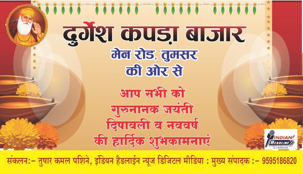 “दुर्गेश कपड़ा बाजार तमसर”दीपावली और नव वर्ष की हार्दिक बधाई और शुभकामनाएं! यह पर्व आपके जीवन में सुख, समृद्धि और खुशियां लेकर आए। दीपावली की शुभकामनाएं: यह रोशनी का त्योहार आपके जीवन में शांति और खुशी लाए। आप और आपका परिवार हमेशा खुशियों से भरा रहे। दिवाली की मिठाइयों की मिठास आपके जीवन को और भी मधुर बना दे। नव वर्ष की शुभकामनाएं: यह नया साल आपके लिए ढेर सारी खुशियां और सफलता लेकर आए। आपके सभी सपने सच हों और जीवन उज्जवल हो।