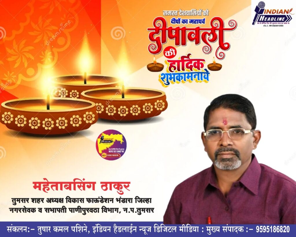 मेहताबसिंह ठकुर सामाजिक कार्यकर्ता: दीपावली और नव वर्ष की हार्दिक बधाई और शुभकामनाएं! यह पर्व आपके जीवन में सुख, समृद्धि और खुशियां लेकर आए। दीपावली की शुभकामनाएं: यह रोशनी का त्योहार आपके जीवन में शांति और खुशी लाए। आप और आपका परिवार हमेशा खुशियों से भरा रहे। दिवाली की मिठाइयों की मिठास आपके जीवन को और भी मधुर बना दे। नव वर्ष की शुभकामनाएं: यह नया साल आपके लिए ढेर सारी खुशियां और सफलता लेकर आए। आपके सभी सपने सच हों और जीवन उज्जवल हो।
