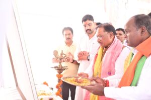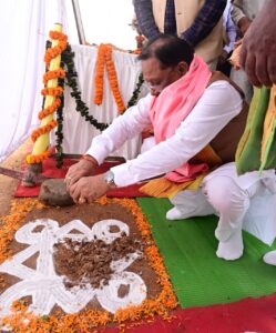 कोरबा/कटघोरा 9अक्टूबर को दोपहर 2 बजे के लगभग छत्तीसगढ़ के मुख्यमंत्री माननीय श्री विष्णुदेव साय जी की उपस्थिति में जटगा मोड़ के पास भगवान श्रीसहस्त्रबाहु चौक, उद्यान का भूमि पूजन, पंडित राजा महाराज के द्वारा संपन्न कराया। इस अवसर पर माननीय मुख्यमंत्री ने कहा कि कसनियां मोड के पास भगवान श्री सहस्त्रबाहु की प्रतिमा एवं उद्यान बनेगा।और भगवान श्री सहस्त्रबाहु अर्जुन जी की मूर्ति के लिए 25 लाख रूपये और श्री सहस्त्रबाहु द्वार की घोषणा की।