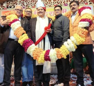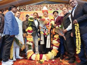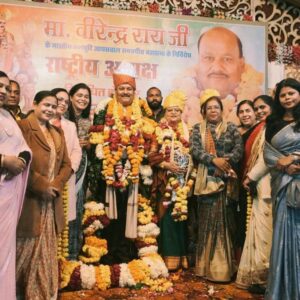 श्री शिर्डी धाम महाराष्ट्र में हुए राष्ट्रीय पंचम अधिवेशन में, भारतीय कलचूरी जायसवाल संवर्गीय महासभा के राष्ट्रीय अध्यक्ष बनने पर प्रथम नगरआगमन के पश्चात श्री वीरेन्द्र कुमार राय एड० जी का झांसी में विभिन्न समाजसेवी संगठनों द्वारा सम्मान समारोह का दौर चल रहा है, इसी श्रृंखला में, झांसी गुरुवार दिनांक 19/12/2025 को, सम्मान समारोह के आयोजक श्री मधुकर निरंजन ‘पिंटू’ जी, श्री राजकुमार राय जी, श्री सतीश राय जी त्रिमूर्ति द्वारा 51 किलो फूलों की माला चांदी का मुकुट, पहनाकर एवं चांदी जड़ित श्रीफल एवं क्षत्रिय स्मृति चिन्ह तलवार भेंटकर सम्मान किया गया। इस अवसर पर त्रिमूर्ति बंधुओं का बहुत बहुत धन्यवाद एवं आभार