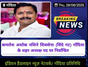 कमलेश अशोक नशिने शिवसेना (शिंदे गट) गोंदिया के शहर अध्यक्ष पद पर निर्वाचित